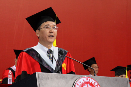 同學們,大學的英文“University”這個詞來源於拉丁詞語,由聯合和多樣即uni和vers組合而成,早期的大學也的確是由學生和教師共同管理的一種自治聯合體。一千多年來,大學已經發生了深刻的變化,從單純的知識傳承,到發現新知、發明新技、服務社會,推動人類的文明和進步。但是,無論大學如何變化,學生始終是大學的主人,培養學生始終是大學的核心使命。