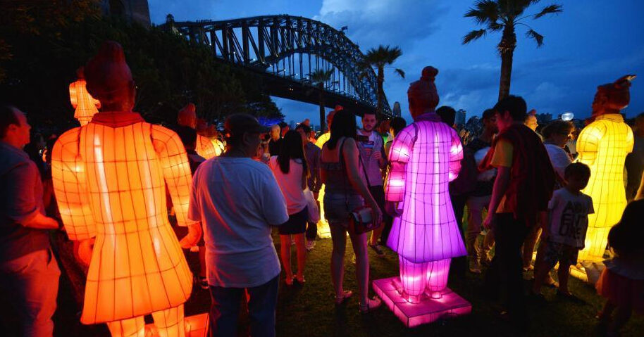 中国兵马俑灯笼点亮澳大利亚悉尼
