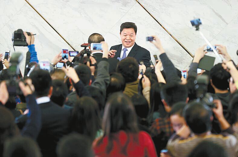 新闻发布会结束后,记者继续追问吕新华(新华社图片)