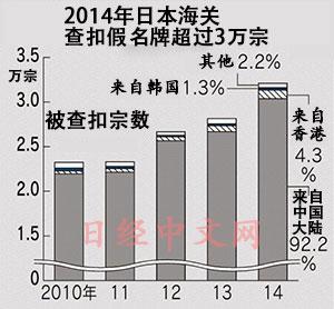 據日經中文網報導,日本財務省3月4日發佈的統計資料顯示,2014年日本查扣仿冒品首次超過3萬宗。為阻止假名牌等仿冒品的流入日本,日本政府將強化海關的入境檢查,還將調整制度,讓企業更容易提出查扣仿冒品的申請。已從從受害企業廣泛收集仿冒品的辨別方法等資訊。