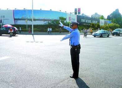 這個警察在履行職責,他很認真負責