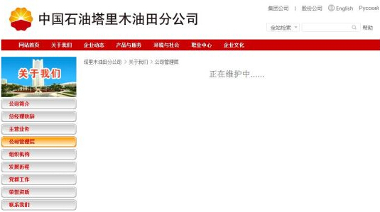 鳳凰財經查看中國石油塔里木油田分公司官網發現,“公司管理層”一欄已撤下相關領導履歷。顯示“正在維護中……”。