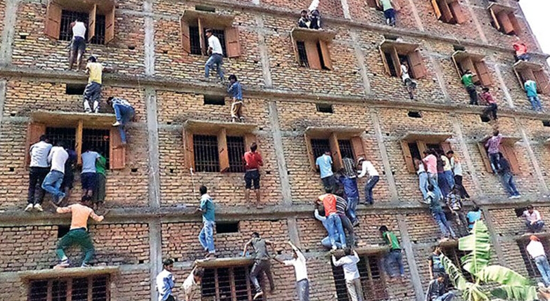 据印度媒体报道,印度比哈尔邦正在举行一年一度的全邦高中升级考试,为了帮孩子作弊,一些考生家长竟不惜飞檐走壁,如蜘蛛侠般爬上教学楼窗户,向考场里的孩子递小抄(答案)。