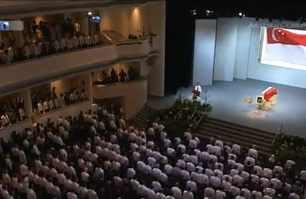 李顯龍總理在新加坡國立大學文化中心舉行的國葬儀式上首先發表悼詞,稱頌李光耀“度過了充實及豐碩的一生”。
