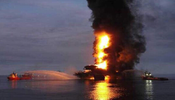 4月1日,浓烟从墨西哥湾坎佩切区域内的钻井平台冒出。