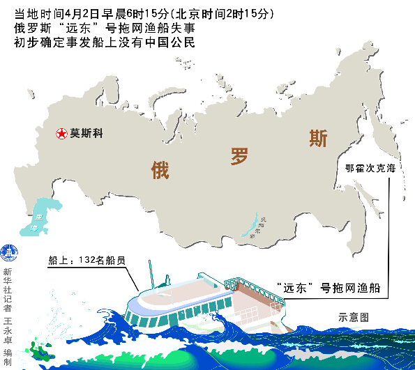 发生的事故的是一艘名为“远东”的大型拖网渔船,初步消息称,船上载有132人,沉船已经导致数十人死亡。