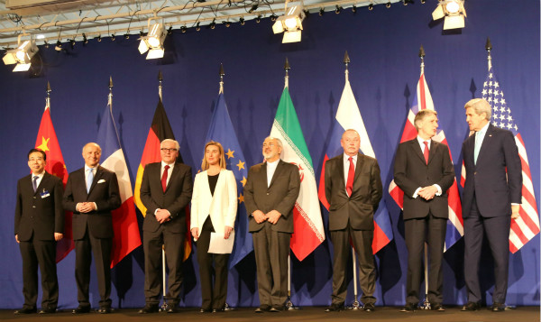 當地時間2日晚,伊核問題六國(美國、英國、法國、俄羅斯、中國和德國)、歐盟以及伊朗在歷時8天的談判後終於就全面解決伊核問題達成初步協議。歐盟外交和安全政策高級代表莫蓋里尼與伊朗外長紮里夫當天共同出席發布會,宣布這一成果。