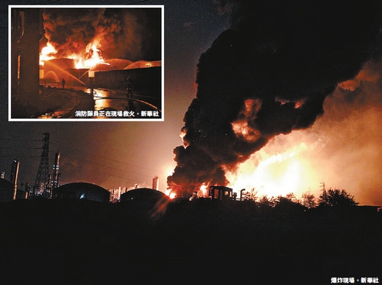 公安部消防局官方微博@中國消防稱,截至昨天21時30分,前方個別受傷人員為爆炸玻璃碎片劃傷。目前,罐區3個1萬立方的罐體、1個2萬立方的罐體正在燃燒。前方傳回的視頻顯示,烈火翻卷,處於猛烈燃燒狀態。