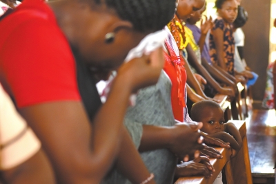 4月5日,在肯雅加里薩市一教堂,人們參加悼念襲擊事件遇難者活動。新華社發
