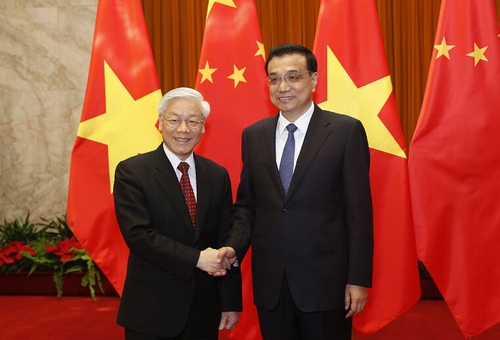 中共中央政治局常委、國務院總理李克強8日下午在人民大會堂會見來華進行正式訪問的越共中央總書記阮富仲。李克強指出,中越成立海上、陸上、金融合作三個工作組,有利于雙方構建陸海統籌合作的新格局。希望雙方切實按照三頭并舉、協同推進的原則,將彼此發展戰略與規劃更好對接,開展海上共同開發、陸上互聯互通和金融等領域合作。我們愿同越方于年內盡早啟動北部灣灣口外海域共同考察,進而推動灣口外海域乃至更大范圍海域共同開發取得實質進展。