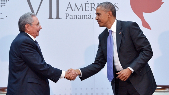 倒退半個世紀,從古巴總統的口中說出“美國總統是一個誠實的人”,這簡直是一件不敢想象的事情。古美兩國領導人11日舉行了歷史性的會晤。10日晚,前去巴拿馬報道第七屆美洲國家首腦峰會的攝影記者拍下了美國總統奧巴馬和古巴總統勞爾-卡斯特羅互相問候并握手的歷史性一刻。