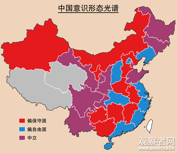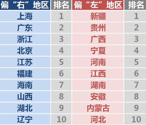 你家乡偏左偏右?两位来自哈佛和MIT的学者利用网络数据,列出了中国10个最“自由派”的省份,10个最“保守”的省份,以及9个“中立”省份。