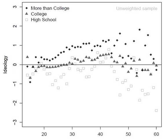 受教育程度越高,偏好“自由主义”的人群比例越大