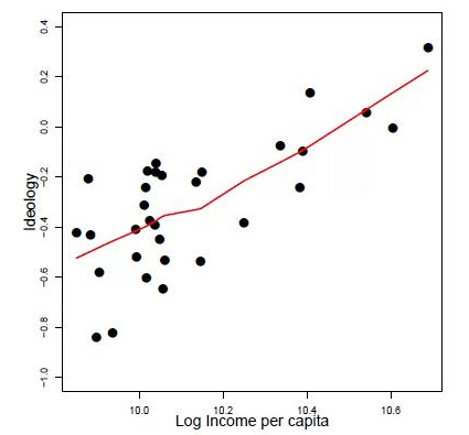 人均收入与对“自由主义”的偏好呈正相关