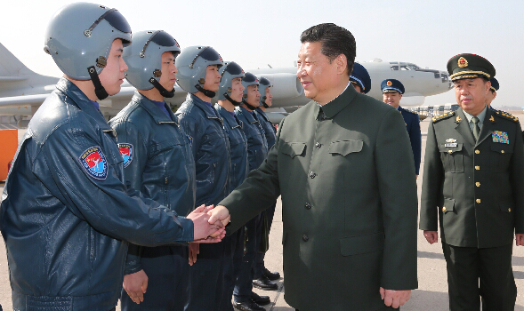 今年2月,习近平视察看望驻西安某部队,并同空军航空兵某团飞行机组和机务人员握手交谈。新华社