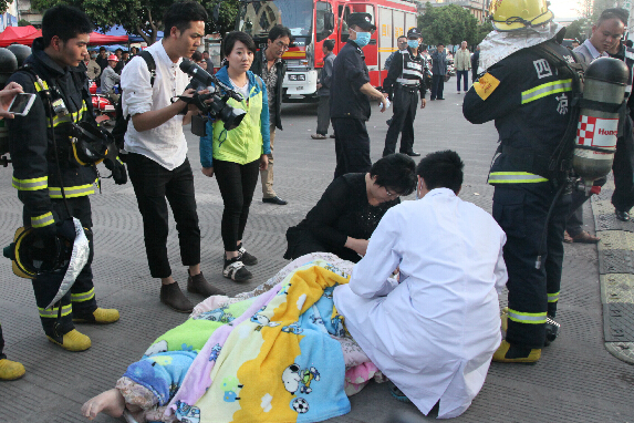 医护人员实施现场救治。中新社 .