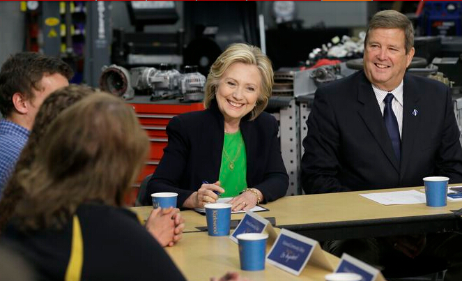 希拉莉先在一家咖啡店与民众交谈,她点了一杯印度奶茶、一杯鲜奶咖啡和柠檬水,花了6.96美元。她之後前往一家社区学院与师生交流,讨论教育政策,又提出四大执政方向,指期望成为美国人的扞卫者。