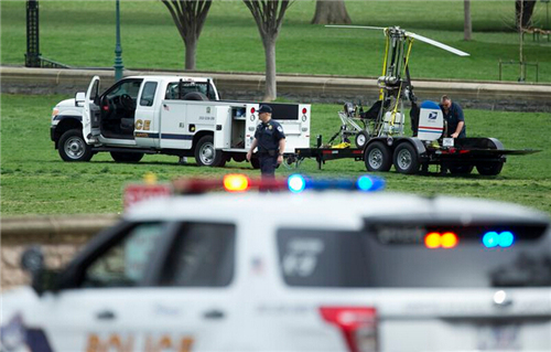 來自國會警局的消息稱,一架小型旋翼直升機當天下午降落在美國會西側的草坪上,機上一人遭警方逮捕。警方一度將附近街道封鎖。