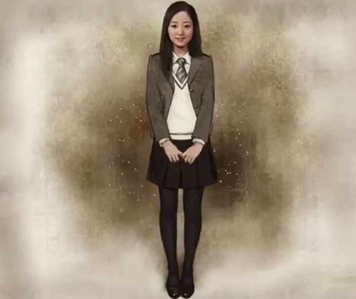 小女孩慢慢長大,換上了白襯衫、藍色百摺裙,打起領結,這時已中學生。隨著女孩頭髮越留越長,換上高中校服亭亭玉立。
