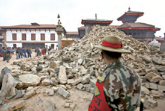 尼泊爾8.1級地震,導致加德滿都世界文化遺產杜巴廣場上的建築大部分倒塌。