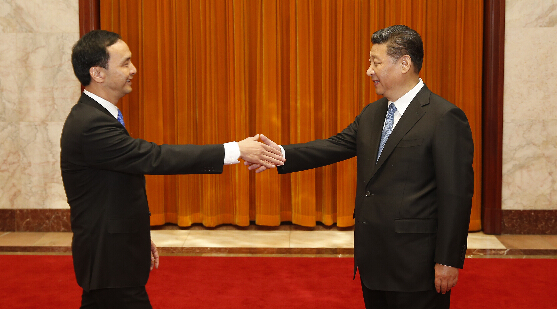 5月4日,习近平在北京人民大会堂会见中国国民党主席朱立伦。中新社