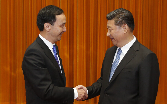「习朱会」昨在北京人民大会堂举行,这是朱立伦首度以新任国民党主席身份拜会中共中央总书记习近平,也是国共两党领导人睽违6年後的首次会见。朱立伦表示,海峡两岸是命运共同体,希望在「九二共识」基础上,促进两岸在区域和平、环保、经济整合等方面携手合作,持续推动两岸关系和平发展。