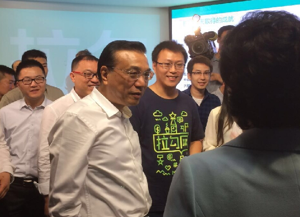 馬德龍向總理介紹說:“拉勾網是專注互聯網領域的公司,我們創業不到兩年時間,現在公司100多號人,每年服務150萬用戶、6萬多家公司。”總理則說,大眾創業、萬眾創新都要先靠就業,就業是一切的基礎。拉勾網100多人,一年能輸送150萬人才,很了不起!