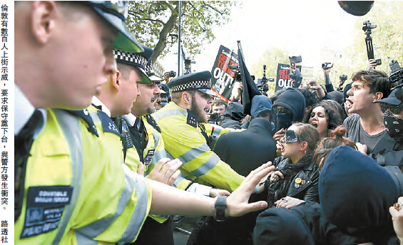 【香港商報綜合報道】英國首相卡梅倫8日勝選,承諾展開全面的經濟和政治改革。外界分析認為,擺脫了自由民主黨的掣肘后,獲得獨立執政的保守黨料將推動更加強硬且右傾的政策。而倫敦在當地時間9日則出現數百人的示威,不滿保守黨計劃再推行緊縮政策,抗議人士與警方爆發冲突,17人被捕,2名警員受傷。