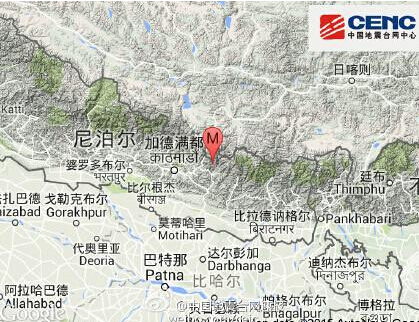 美國地質勘探局則錄得強度7.4級,震源深度10公里,震央位於珠穆朗瑪峰附近城鎮南崎巴扎以西約68公里,接近中國邊境。