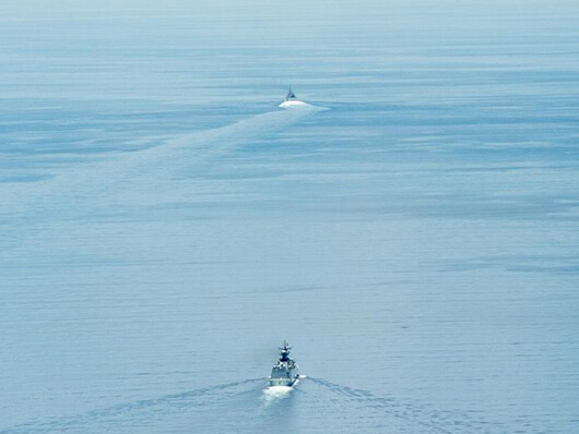 中国054A护卫舰出现在美军后方