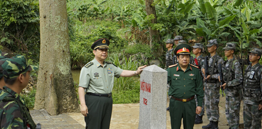 两国国防部长17日还率团前往解放军驻河口边防营综合训练场,观摩了射击、刺杀操、军犬破障等训练科目,并共同见证了这个边防营与越南老街国际口岸边防屯结为友好营屯的备忘录签署仪式。