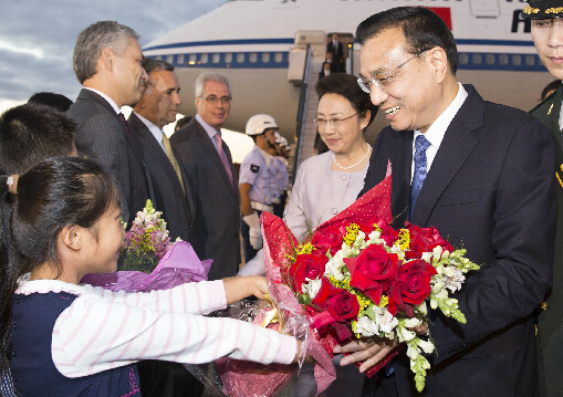 中国国务院总理李克强於当地时间18日下午乘专机抵达巴西利亚空军基地,开始对巴西进行正式访问。李克强总理夫人程虹同机抵达。