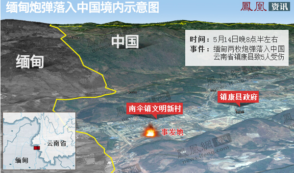 来自缅甸的两枚炮弹14日落入中国云南省临沧市镇康县南伞镇,导致5人受伤。中国外交部发言人华春莹15日回应此事时说,中方对此表示强烈不满,已严正要求缅方采取有效措施,杜绝类似事件再次发生,并敦促有关各方尽快平息事态,恢复缅北地区的和平稳定。