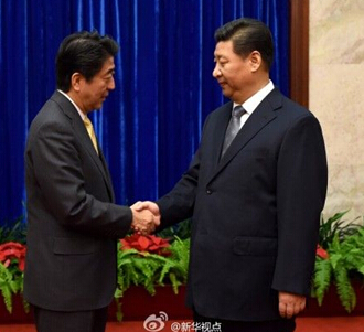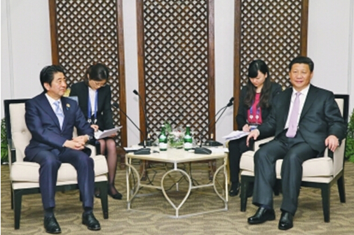 習近平闡明了中方原則立場,指出近來中日關系面臨嚴重困難,這是我們不愿看到的。中方愿在中日四個政治文件基礎上,繼續推進中日戰略互惠關系。習近平強調,日方應本著正視歷史、面向未來的精神,正確處理釣魚島、歷史等敏感問題,尋求妥善管控分歧和解決問題的辦法。
