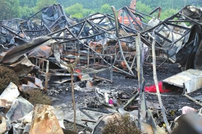 火災現場廢墟一片,剩下一堆鐵架子。圖/CFP