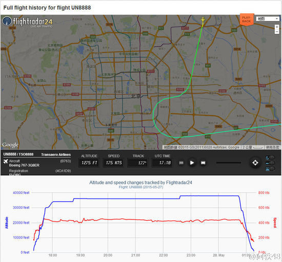 據了解,該UN8888次航班隸屬于俄羅斯全祿航空公司,根據首都機場官網顯示,該航班昨日凌晨1點17分自首都機場起飛前往莫斯科。據知情人士介紹,該飛機機型為B763。按照飛機的正確飛行路線,飛機從首都機場起飛后應該先向南飛,之后向東,再向北飛行,但該航班起飛后,在向南飛行一段路程之后,開始向西飛行,直奔北京市區。