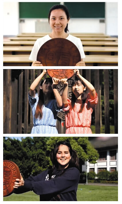 復旦大學宣傳片傳遞校徽畫面。視頻截圖
