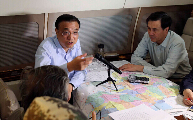 李克强在赶往现场的车上电话调动指挥。中新社