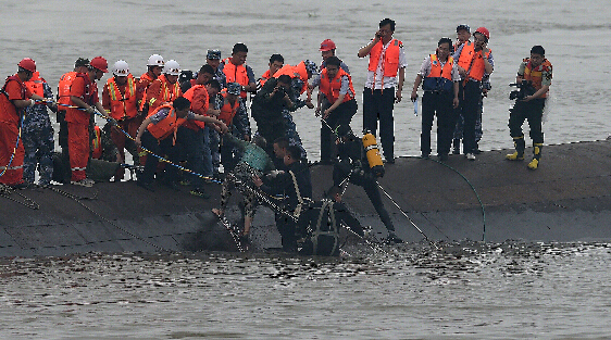 “東方之星”倒扣沉入江中救援困難