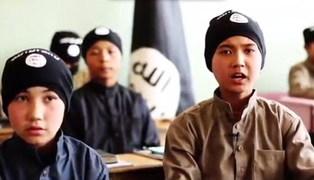 视频被认为拍摄于叙利亚,里面还展示了一所ISIS创办的学校。画面里,孩子坐在教室里,头上戴着印有ISIS标志的帽子。