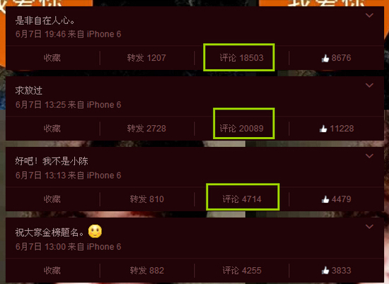 @愛心菇娘微博截圖,成千上萬的評論數……具體內容見下