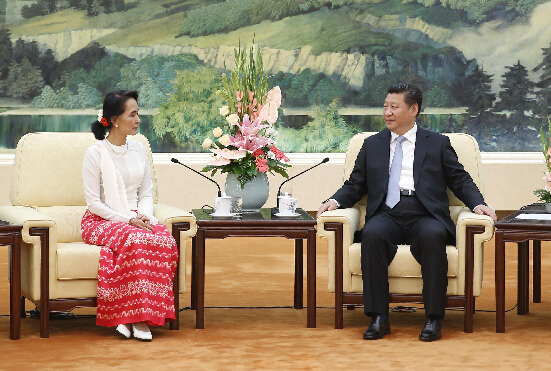 習近平強調,中方始終從戰略高度和長遠角度看待中緬關系,支持緬甸維護主權獨立和領土完整,尊重緬甸自主選擇發展道路,支持緬甸民族和解進程,堅定不移推進中緬傳統友好和務實合作。希望并且相信,緬方在中緬關系問題上的立場也將是一貫的,無論國內形勢如何變化,都將積極致力於推動中緬友好關系發展。習近平說,中國共產黨同全國民主聯盟開展交往以來,兩黨關系取得較快發展,交流合作日益密切。希望通過這次訪問,你能夠更深入地了解中國和中國共產黨,這有助於增進雙方相互理解和信任,為兩黨兩國關系發展打下更好基礎。也希望你和全國民主聯盟繼續發揮建設性作用,積極引導緬甸民眾,公正理性看待中國和中緬合作,為兩國關系發展增添更多正能量。昂山素姬說,緬中兩國是鄰居,而鄰居是不可選擇的,致力於兩國友好關系發展至關重要。緬甸全國民主聯盟重視緬中友好,欽佩中國共產黨領導中國取得的巨大發展成就,希望通過此訪深化兩黨關系,推動兩國人民之間的友好關系向前發展。