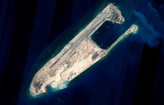 这是完成陆域吹填工程后的永暑礁卫星图片。新华社