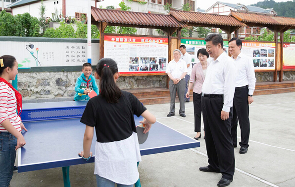 書記來到貴州遵義的花茂村,在該村白泥組的黨員群眾之家門口,幾個孩子在打乒乓球,總書記走上前去觀看。得知孩子們是放學了在這里玩,他問大家學校遠不遠、放學怎么回家。孩子們說,只有一公里的路,走10多分鐘就到家了,總書記聽了微笑著點點頭。