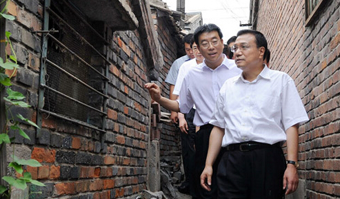 图为2011年6月16日,李克强来到北京市门头沟考察工矿棚户区改造情况。新华社