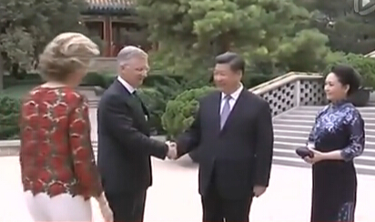 仲夏傍晚的中南海水波瀲滟,清風徐徐。習近平和夫人彭麗媛在瀛臺迎接菲利普和王后瑪蒂爾德。兩國元首夫婦親切握手,互致問候,隨后信步拾階,來到涵元殿親切交談。