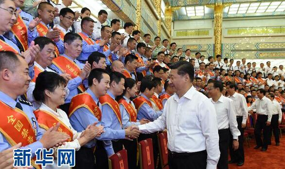 6月25日,黨和國家領導人習近平、李克強等在北京人民大會堂會見全國禁毒工作先進集體代表和先進個人。 新華社記者饒愛民攝