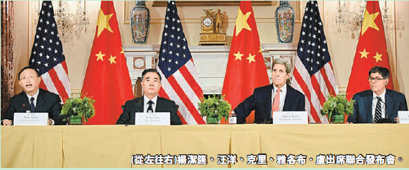 中國國務院副總理汪洋、國務委員楊潔篪與美國務卿克里、美財長雅各布·盧在24日舉行的聯合發布會上宣布,經過兩天的對話和磋商,雙方在戰略、經濟、人文三軌一共達成了近300項成果。其中,戰略軌100多項,經濟軌70多項,人文軌119項。具體包括中美節能減排的低碳智能城市、零排放電動巴士等合作項目,打造「保護海洋」中美合作新「增長點」。