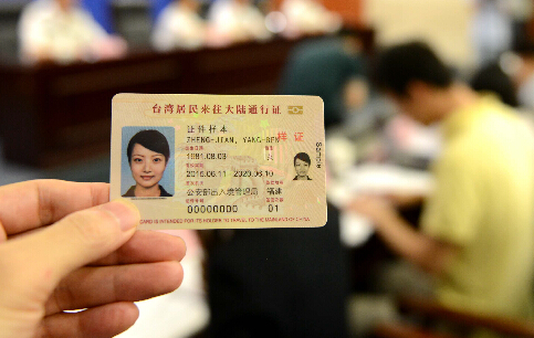 7月1日,为进一步便利台湾同胞来往大陆,提高台湾居民来往大陆通行证的签发和查验效率,增强证件防伪性能,公安部决定试点签发2015版台湾居民来往大陆通行证(简称电子台胞证)。自7月6日起,福建省公安机关出入境管理部门和公安部出入境管理局委托的港澳地区办证服务单位开始受理电子台胞证的申请,同时停止受理现行本式台胞证申请。当日,公安部新闻通气会在福建省公安厅举行。图为电子台胞证样本。