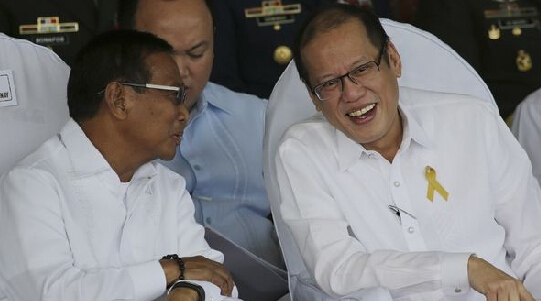 2014年12月8日,菲律賓副總統杰約馬爾·比奈(左)與總統貝尼尼奧·阿基諾三世在馬尼拉舉行的一個紀念活動上交談。